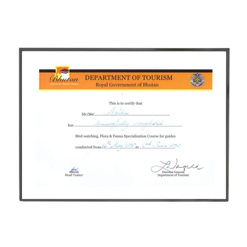 In addition to their field experience, all our guides have undergone thorough training and certification by the Ugyen Wangchuck Institute for Conservation and Environment, a government-affiliated research and training institute exclusively dedicated to nature guiding courses. Thanks to their extensive years of field experience, they have excelled in these courses, further enhancing their credentials.