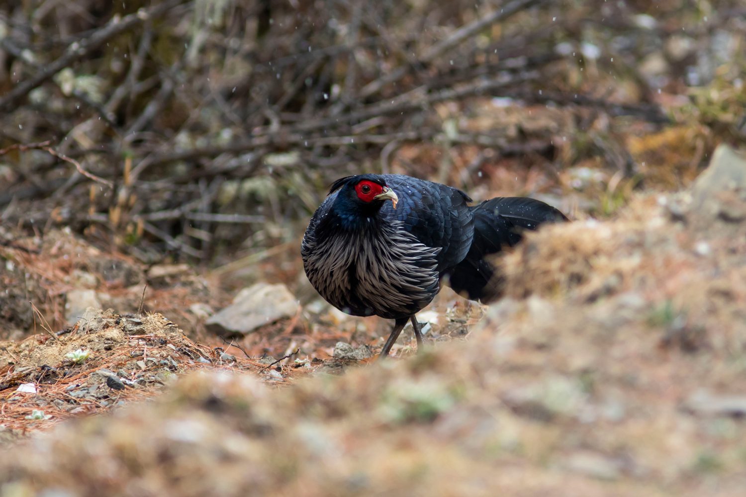 Later in the day, drive north of Thimphu valley. While there may be opportunities to photograph other birds, we will focus on capturing the Satyr Tragopan, a beautiful Himalayan pheasant.
